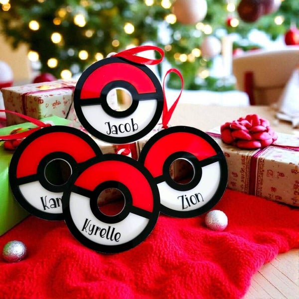 Do you know a pokemone fan? If so, you're in the right place! These personalised pokeball Bauble are perfect not just for Christmas but for any occasion. Can be used as a door sign ,Bauble or even placed on the wall.