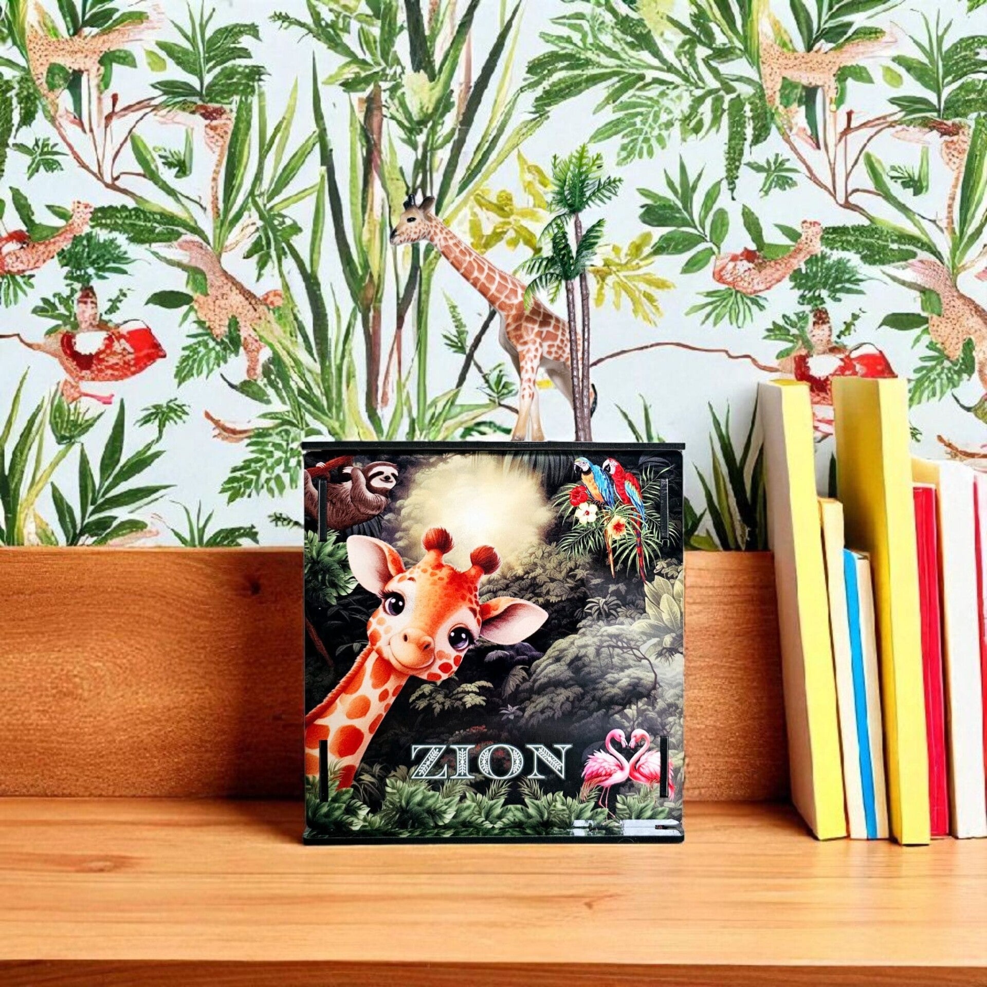 Safari Jungle themed personalised wooden money box